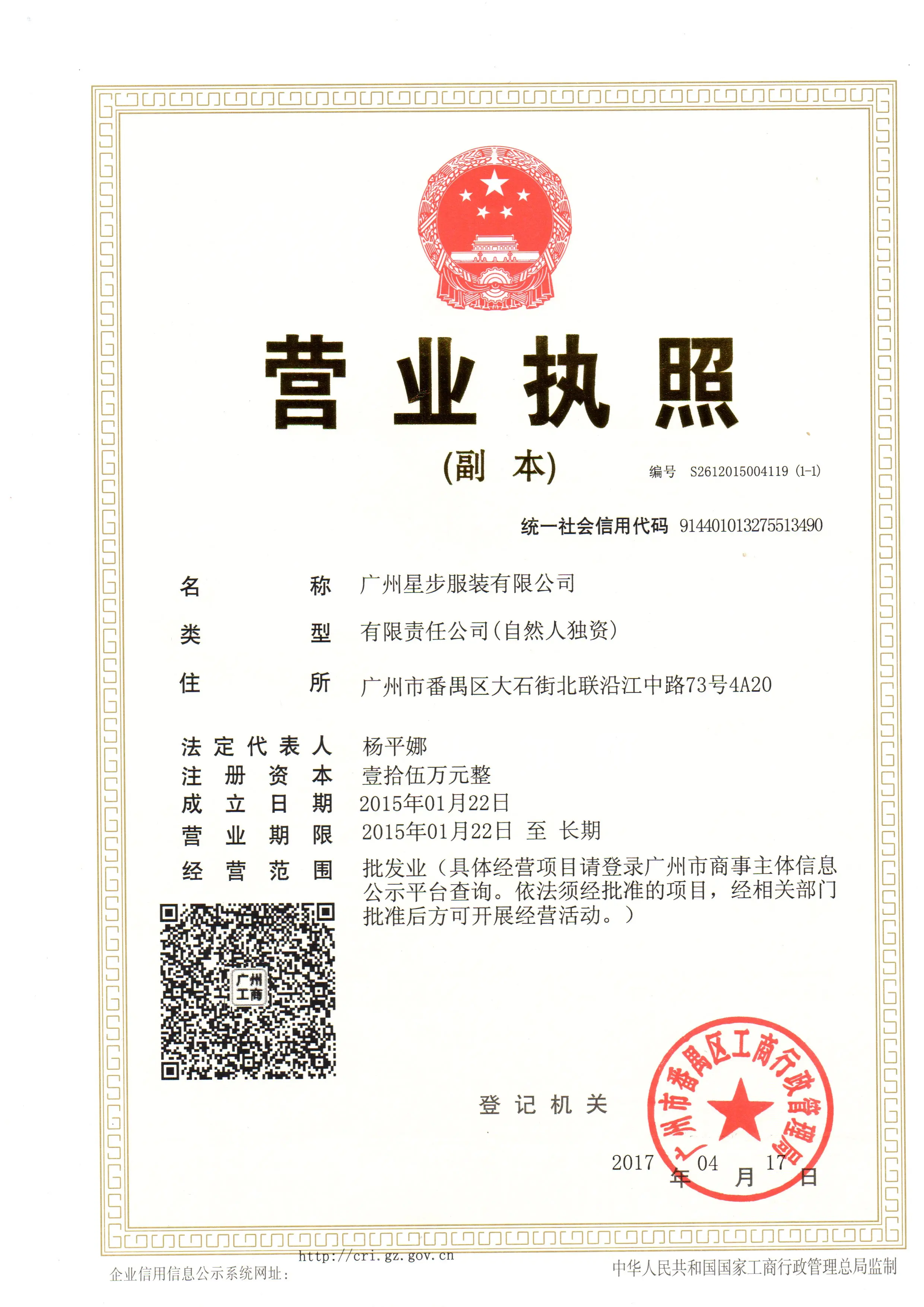 Registered address : Room F2519, Room 201-219, 301 Chaoyang East Road, Dashi Street, Panyu District, Guangzhou Guangzhou Guangdong China